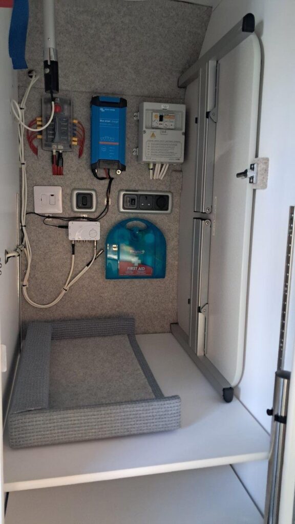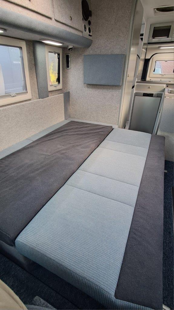 wide double bed. Murvi options: Webasto ATEVO diesel & mains space and water heating system, 175watt
