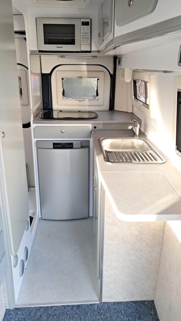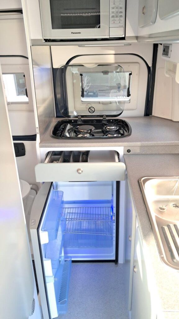 Solar panel, 230v Microwave oven, RM8401 (90L) 3-way fridge, Thetford 3-burner hob with mains hotplate,